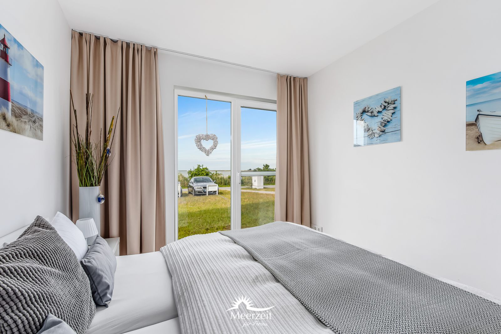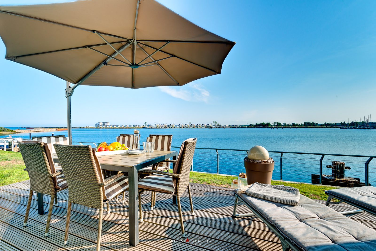 Die große, nach Süden ausgerichtete Terrasse grenzt direkt an das Wasser und bietet einen herrlichen Blick auf das Treiben im Yachthafen. Die wunderschöne Badebucht im Ostseeresort Olpenitz ist nur wenige Gehminuten entfernt.
