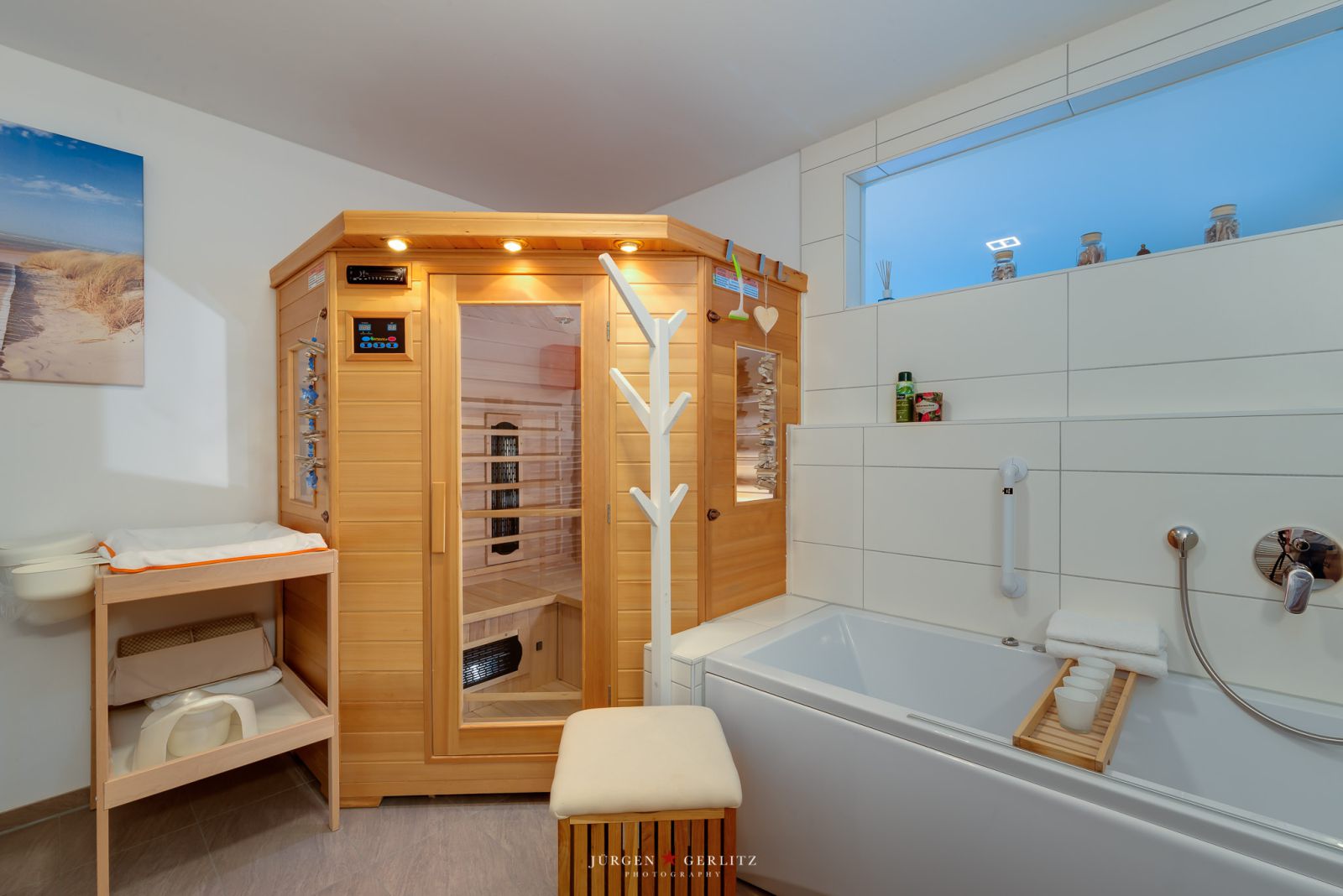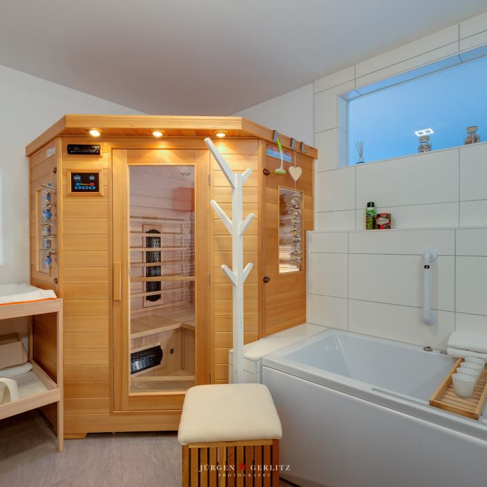 Whirlbadewanne, Infrarotsauna, Südterrasse