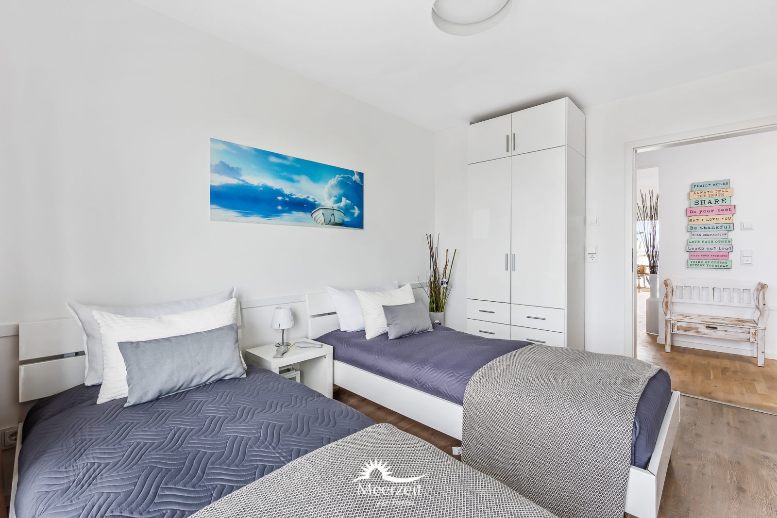 Von hier aus genießen die Eigentümer einen sensationellen Blick über den ehemaligen Marinehafen, welcher sich heute mit seinem Sport- und Yachthafen großer Beliebtheit bei jedem Wassersportfan erfreut.